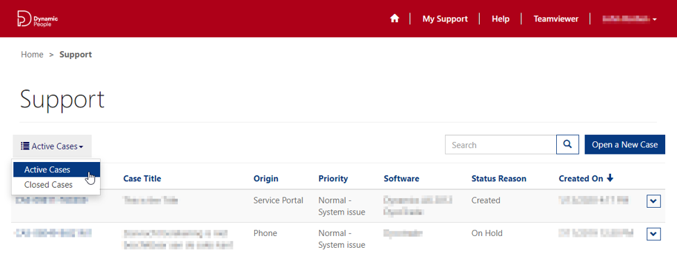 2. Cases overview – Active versus Closed Cases. Use the button on the left side to switch between Active Cases and Closed Cases.