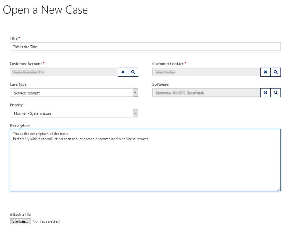 - Attach a file – If needed click on the button Choose Files to attach for example screenshots to the Case.