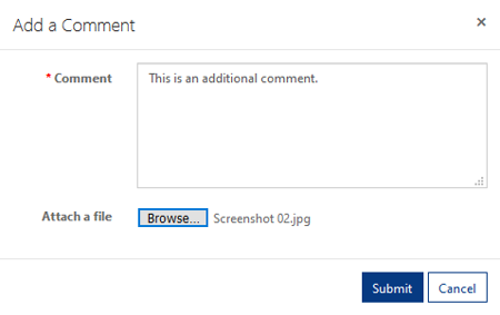 5. Add comment – Click on the button Add comment under the field Description to enter additional comments to an active case.